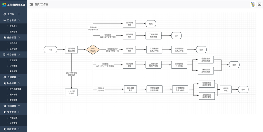 应用场景:将公司的管理制度固化为电子审批流。无论是合同审批、付款申请、采购订单还是变更签证,都按照预设的流程(如:项目经理→成本部→财务总监→总经理)自动流转。